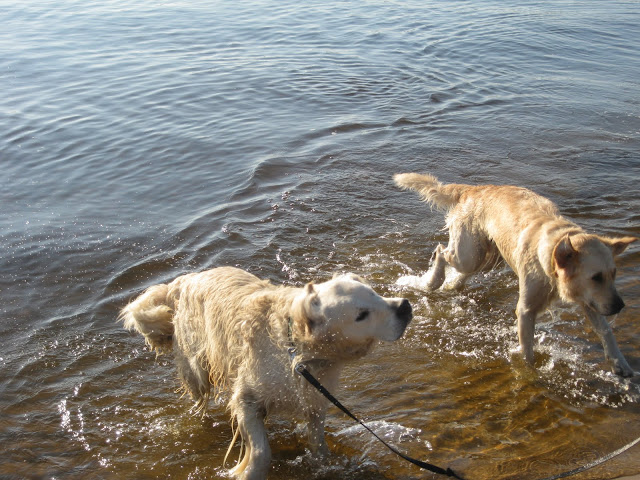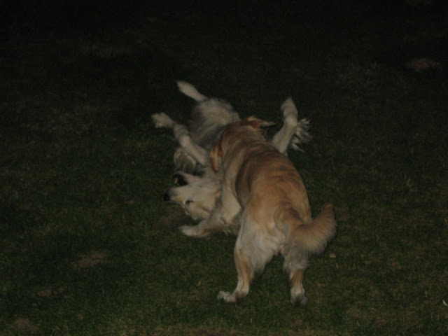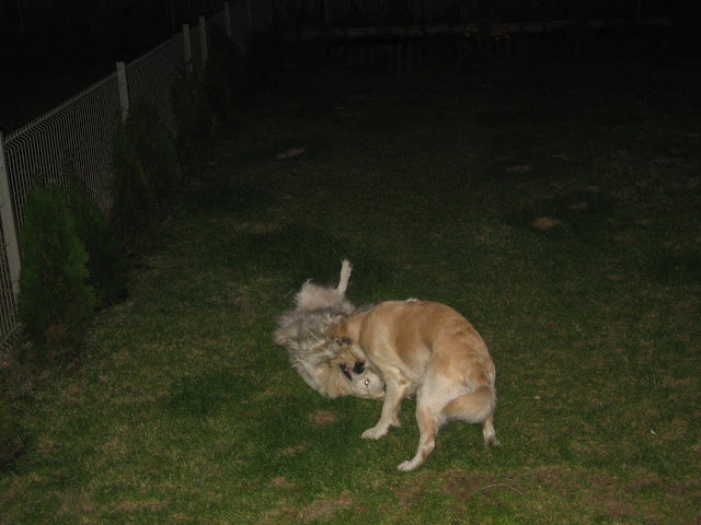 Popołudniu spotkaliśmy się z Agą i Markiem Truflowo-Rufikowymi . Na poczatku nie było źle ale po chwili Nugatowi znowu włączył się agresor i gdy podbiegła do mnie Trufelka rzucił się na nią ( na szczęście nić się nie stało), a później do Taby, był to atak tottalnie bez ostrzeżenia. W drodze powrotnej do samochodu NUgat warczał (pokazywal) ząbki za każdym razem jak zbliżał się do niego któryś z psiaków. Wskoczył do samochodu i po agresywnym psie nie było śladu...