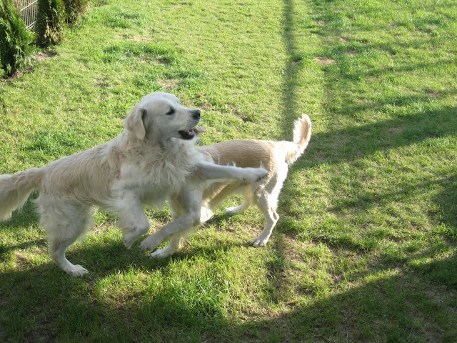 Myślę, że dzisiaj też potwierdziło się, że agresywne zachowanie Nugata w stosunku do psów to wynik stresu, strachu, frustracji pobudzenia... na specerku kiedy NUgacik był w miarę wyluzowany i czuł się swobodnie, spotkalismy malego psiura, Nugat podbiegł do niego z merdającym ogonem, bez stresu, powąchały się psiaki i wrócił do Nas, żednego warkolenia, agresji, nic.