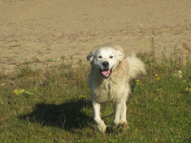 Uciekamy na spacerek do lasu, pogoda piękna, trzeba korzystać MarzenaTabaNugat - 2010-10-10, 17:41 Na popołudniowy niedzielny spacerek wybraliśmy Zalew Zegrzyński i pobliskie lasy. Mieliśmy okazję troszkę poćwiczyć podstawowe komendy "do mnie" i "siad". Nugatek początkowo był troche zestresowany=podniecony jednak z każdą minutą widać było, że czuje się bardziej wyluzowany. Ładnie przybiegał na zawołanie chociaż nie zawsze od razu. Do jeziora wszedł ale niezbyt głeboko (nie pływał). Na dzisiejszy spacerek wzięłyśmy też piłki aby sprawdzić czy Nugacik będzie zainteresowany. I chociaz od czasu do czasu podbiegł, przyniósł piłeczkę i na komendę puść za smakola oddał bez problemu, nie był piłką specjalnie zainteresowany.