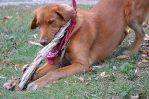 Poza tym Mała radzi sobie coraz lepiej. Potrzebuje uwagi i przytulasków. Uwielbia się bawić, gryźć patole, biegać za piłkami. Ginger można powiedzieć jest psem 'stróżującym'' często szczeka kiedy ktoś obcy zbliża się do bramy.
