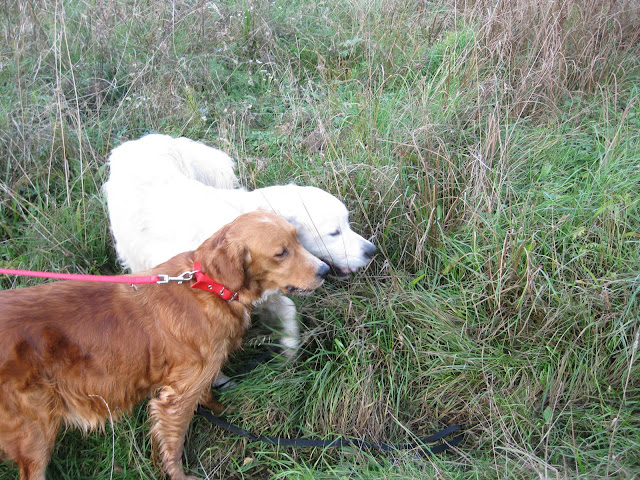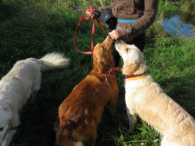 Zapomniałam wczoraj napisać, że w związku z tym, że psiaki były naprawdę brudniaste - (Kaja szczególnie), wczoraj wykąpałyśmy i wyczesałyśmy Kaję. Kajunia jak prawdziwa kobietka zabiegi pielęgnacyjne znosiłą wspaniale. Podczas kąpieli stała w bezruchu wyczesywanie też sprawiało jej przyjemność uszy dała sobie wyczyścić bez problemu.