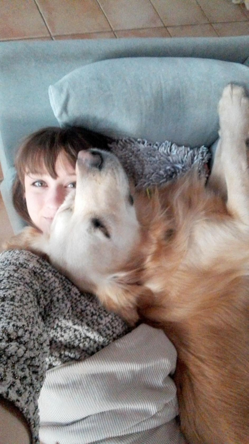 Filip ma się dobrze, zwłaszcza że już powoli może kąpać się w jeziorze, a to dla niego największa radość. Niestety od kilku miesięcy ma problem z kolanem, zaczęło się od kontuzji przy szalonej zabawie z innym pieskiem. Jesteśmy po konsultacji z dwoma weterynarzami i prawdopodobnie jeszcze w tym miesiącu Filip będzie miał operację. Poza tym wygląda na szczęśliwego, ma dużo przytulania i spacerów