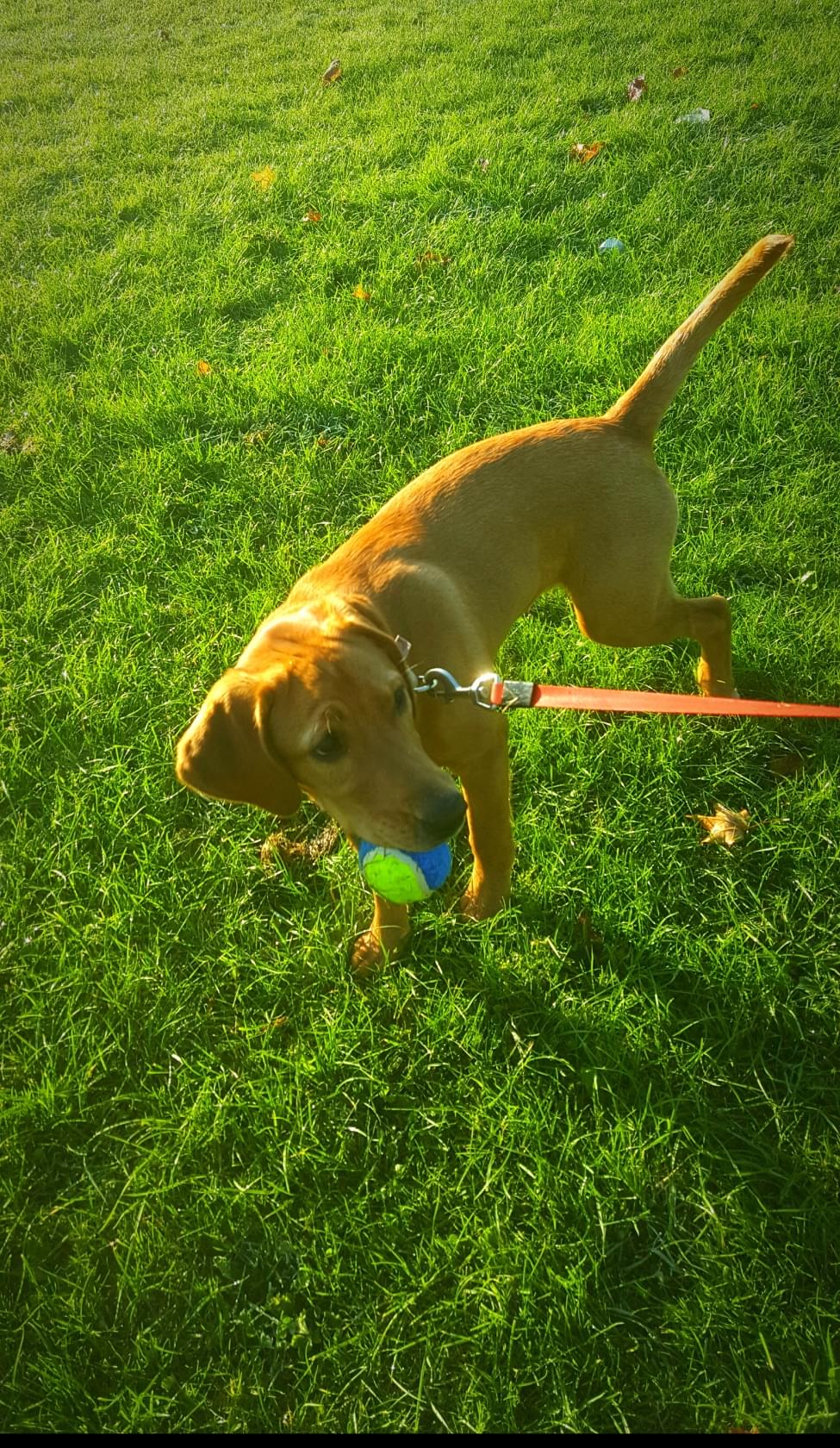 Trochę cignie na smyczy ale to jest na spokojnie do wyuczenia.