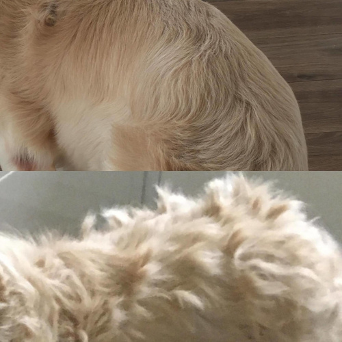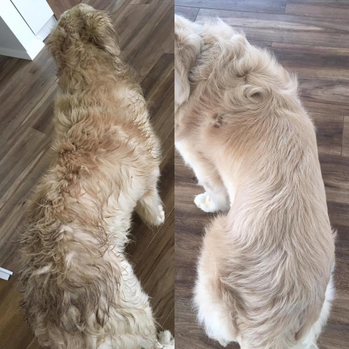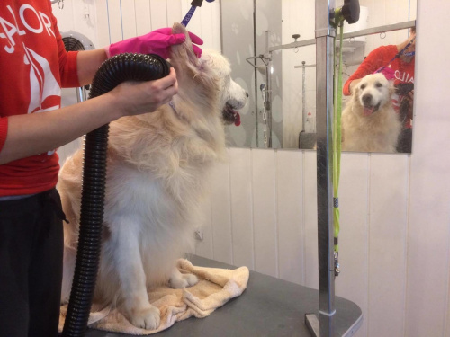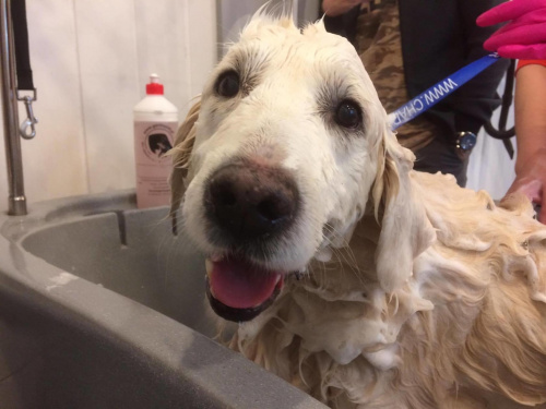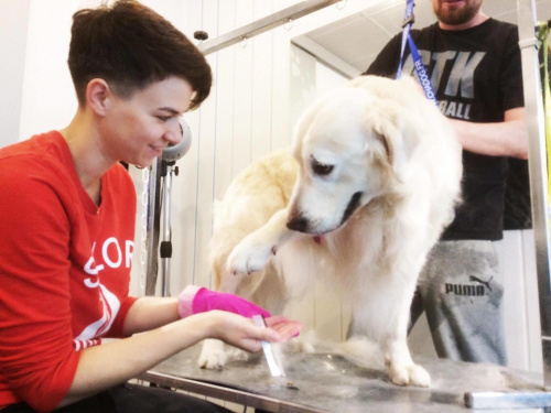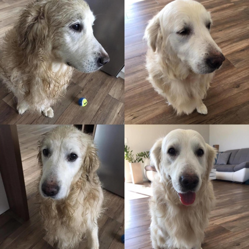 Monika i Sasza - 2017-09-11, 18:17 Bardzo brzydka sierść.. do wczoraj Dzięki pomocy Gosi z Good Dog w Gdyni Ares wygląda bajecznie! 2 godziny poświęcone w niedzielny poranek (za co baaaardzo dziękujemy) i mam pod dachem istne cudo. Chłopaczek nasz był grzeczny, cierpliwy, współpracował, uśmiechał się Jego sierść jest nadal gęsta, lekko kręcona, ale bez kołtunów, miękka i pachnąca. Ma piękny jasny kolor.