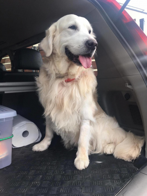 W samochodzie nadal grzeczny, nawet jak siedzi w bagażniku. Wskakuje na pstryknięcie palcami, zostaje o to poproszony. Miał okazje dzisiaj spotkać 4 małe pieski, na żadnego nie zareagował, pełna olewka, nawet jak Saszka zaczęła wchodzić w nimi w kontakt. Kotów zdaje się nawet nie zauważać. Małego 2 letniego dzieciaka sąsiadów mając dziś na ogródku powąchał i odszedł biegać. Dzisiaj mieliśmy w domu 3 osoby, wcześniej mu nie znane, każda przywitana bardzo radośnie. Jedne czego nie toleruje to spacerowiczów za płotem o wczesnych godzinach porannych.