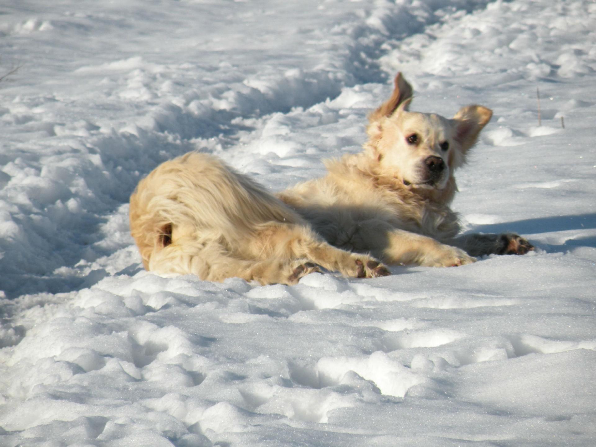Seba, Szeryf i Dziewczyny - 2013-02-20, 16:38 Kolejna noc minęła spokojnie. Wczoraj poznaliśmy kolegę z ulicy (labrador) i koleżankę (bokserkę). Dzisiaj Szeryf miał spotkanie z sąsiadem z naprzeciwka (husky) i z bratem naszego Bena. Oprócz Nukiego (husky) którego trzeba było pacnąć parę razy pod żebro żeby nie warczał wszystkie spotkania były wzorcowe. Zastanawiamy się tylko nad pewną sprawą. Mianowicie, chodzimy z Szeryfem na długie spacery na pobliską łąkę przynajmniej 2km a dzisiaj (bardzo pada śnieg, krajobraz rodem z Syberii) Szeryf w 2/3 drogi zawraca do domu. Myślałem że coś jest z tylnymi łapkami ale jak docierał do ogrodu to strasznie zaczynał brykać. Może się jeszcze troszkę stresuje ??
