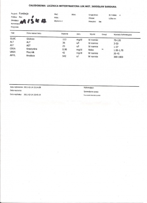 Odebrałam wyniki badań Misi. Wszystko OK:-)