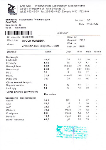 Imie psa wpisali Rufi przez pomyłkę ale to napewno Nugacika wyniki Agfilja - 2010-10-14, 18:06 Trzymamy kciuki, żeby jutrzejszy zabieg przebiegł bez komplikacji! Bądź dzielny Nugat!MarzenaTabaNugat - 2010-10-15, 05:24
