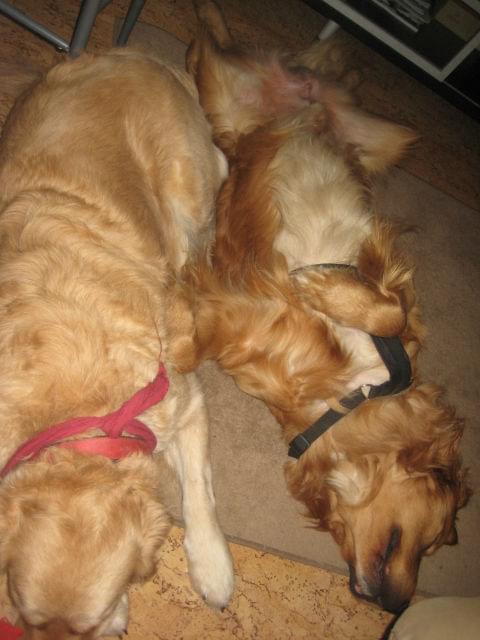 generalnie cały dzień dzisiaj minął spokojnie, chyba tylko 2-3 razy trzeba było upomnieć Leosia jak kręcił się wokół Fredy już gotów do kopulacji , a tak psiaki spokojnie leżały obok siebie, albo po prostu sobie nie wchodziły w drogę.