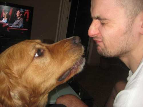 ogólnie Leon bardzo się uspokoił, jest naprawdę grzeczny właściwie zdarza mu się ze 2-3 razy w ciągu dnia próbować wleźć na Fredę ale wystarczy stanowcze "Leon" i chłopak od razu wie, że nie wolno- dobry psiak!