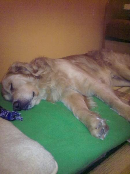 Jeśli chodzi spanie to pierwszą noc mnie obudził przed drugą bo sie bawił, wstałem pobawiłem sie z nim i poszedł spać. Dzisiejsza noc była spokojna, spał grzecznie na swoim miejscu.