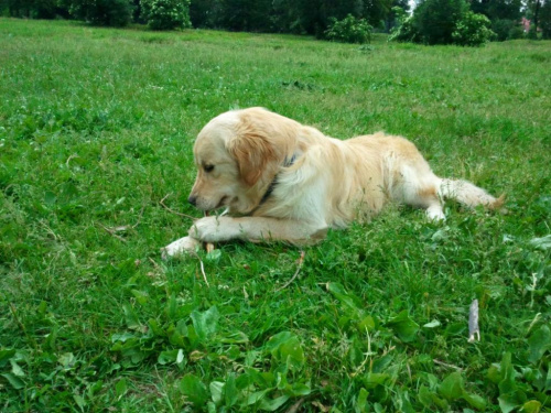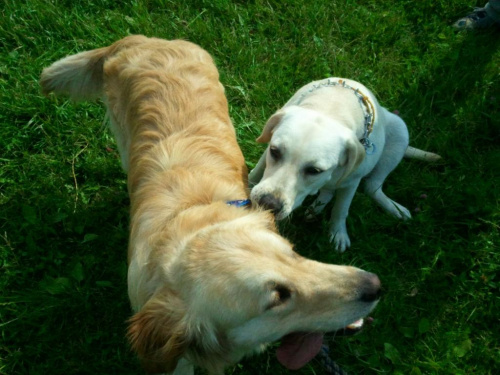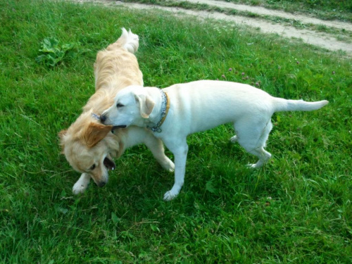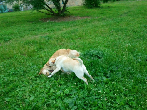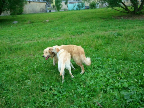 P.S. jak nikt nie chce komentować fotek, to nie ale za karę będą nowe Scoobisiowie - 2011-06-14, 17:43 Scoobuś ma nowe koleżanki, wczoraj poznał się z Albinem- białym goldkiem w podobnym wieku ( kumpel Taysona) i wszystko było ok, zero nerwów. Dziś również gromadka była na spacerku wiec zrobiłam parę foteczek: