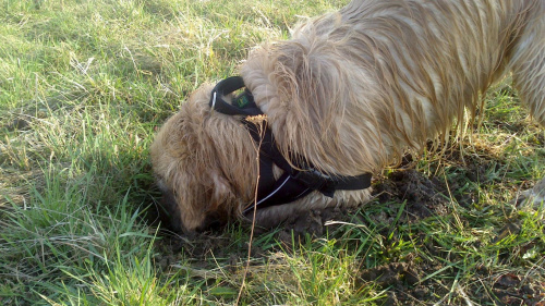 Z każdego spaceru wraca jak górnik przodowy. Mam wrażenie, że najmniejszą kałużę wyczuwa z pół kilometra. Spacer bez zmoczenia się choćby do kolan, bez wykopania co najmniej pięciu wielkich dziur i zjedzenia trzech patyków jest spacerem straconym.