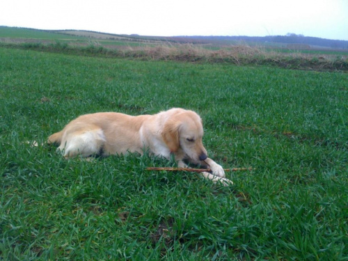 Poza tym nie mamy z Mariką żadnych problemów, puszczamy ją ze smyczy na okolicznych polach i łąkach, chętnie biega za kijami, wraca na zawołanie, sama się nie oddala.