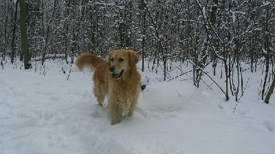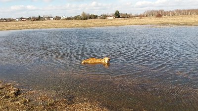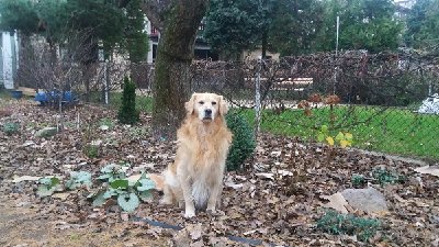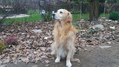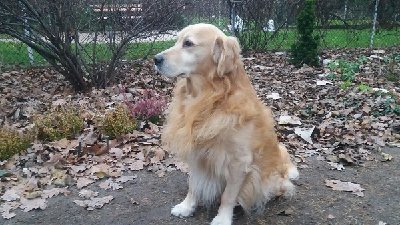 Rinuś ogólnie ma się dobrze. Nie ma z nim większych problemów. Jest bardzo spokojnym psem, tolerancyjnym w stosunku do ludzi i innych zwierząt. Zaprzyjaźnia się z też z kotami Jedyne co mu pozostało z trudnej przeszłości to obawa przed dziećmi. Unika z nimi kontaktu. Podobnie z obcymi osobami. Poza tym jest radosny, chętnie chodzi na spacery, chociaż już woli krótsze dystanse. Niezmiennie piłeczka i woda to jest to, co Rinuś lubi najbardziej Co prawda ostatnio już tak się ustawia, żeby piłeczka trafiała prosto do pyszczka, żeby nie musieć jej tak często gonić, to żadnej wodzie nie przepuści. Nie ważne czy jest czysta, czy to błoto... Jest radosny, ma apetyt, lubi pieszczoty i uwielbia czesanie. Może przy tym nawet zasnąć To, co ostatnio zauważyliśmy, to że zaczyna chodzić bardziej usztywniony i prawdopodobnie powoli odzywa się dysplazja. Czeka go niedługo wizyta u weterynarza.