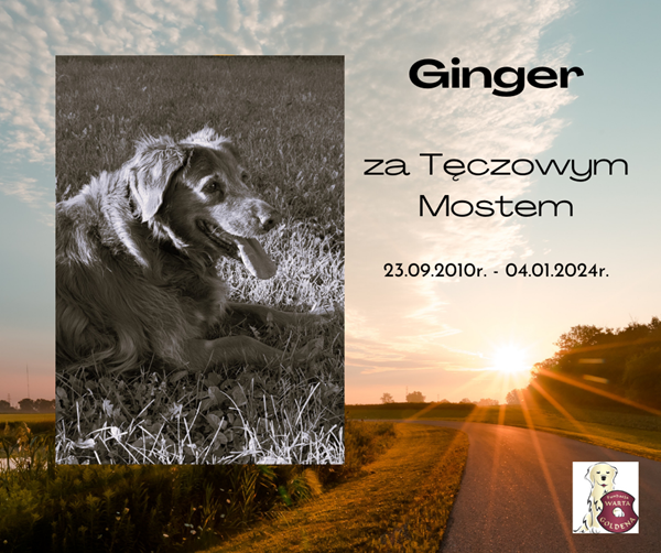 Drodzy Państwo, dziękujemy za otwarte serca na tą piękną psią miłość. Dziękujemy również za stały kontakt, za wszelkie wiadomości utwierdzające nas w przekonaniu, że ten wspaniały pies ma troskliwą opiekę. Jest nam przykro, iż Ginger nie przemierza już z Państwem życiowych szlaków. Niech wszystkie wspólne wspomnienia ukoją Państwa tęsknotę. Współczujemy i przytulamy myślami.
