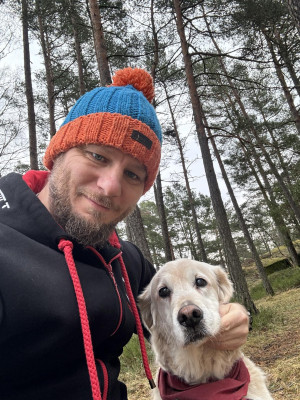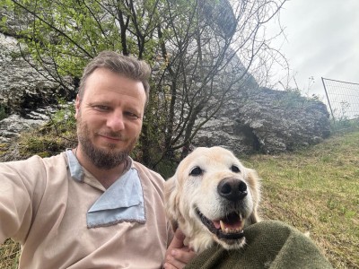 Amber ma nadal niespożyte zasoby energii, wszędzie go pełno. Jest jeszcze bardziej przytulaśny i spragniony kontaktu z ludźmi, jednak gorzej reaguje na inne psy (samce), powarkuje, wyrywa się i mocno szczeka (nie atakuje). Musimy nad tym wciąż pracować. Wciąż poluje na wszystkie pozostawione rzeczy w domu, które może zjeść. Wystarczy, że zapomni się cokolwiek schować i czasem wystarczy mu do tego jakaś poczta lub dokumenty :) Czeka go wizyta u okulisty, bo nie podoba nam się zmiana na oczach (coś w rodzaju zaćmy), ale więcej powiemy po konsultacji. Z Birką dogaduje się wyśmienicie, ciągle są skore do zabawy.