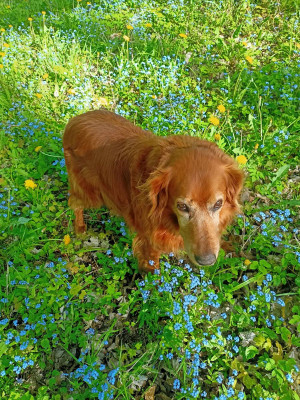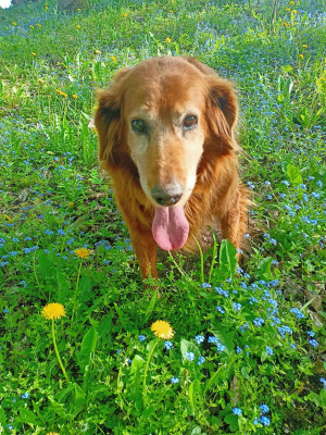 Nasz Fado czuje się bardzo dobrze. Jest ciekawym świata psem. Chętnie chodzi na długie spacery po lesie. Oprócz spacerów lubi wycieczki autem. W przeciwieństwie do typowego goldena unika wody, nie lubi wody ani kąpieli w jeziorze. Jest prawdziwym gospodarzem naszego domu - każdy gość jest poprzedzony głośnym szczekaniem psa. Jest łagodny, spokojny. Jest członkiem naszej rodziny. Cieszymy się, że jest z nami.