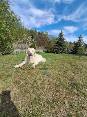 Warta Goldena !! Dziękuję za tego psiego anioła. Oluś zaaklimatyzował się w nowym domu bez problemów, kiedy wychodzimy do pracy grzecznie zostaje w domu, na spacerach szaleje z piłką, prawie zawsze przychodzi na zawołanie, jeszcze nie zwalczyliśmy ciągnięcia na smyczy, ale pracujemy nad tym i się nie poddajemy. Olo praktycznie nie szceka, nie reaguje na domofon ani dzwonek :mrgreen: :mrgreen: Cała rodzina jest zauroczona tym "maluszkiem" :-D :-D pierwszego dnia przyzwyczaił się do windy, jest bardzo pojętny i lubi zabawy węchowe, za piłkę albo smaczka zrobi wszystko :-D Jest perfekcyjny !!