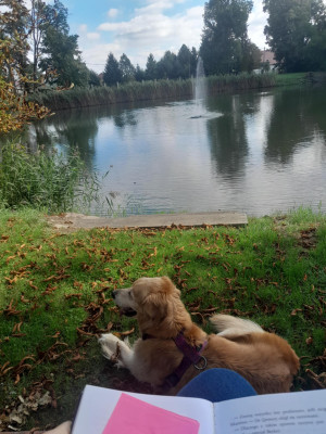 W ciągu ostatniego roku przeżyła z nami przeprowadzkę do nowego miejsca, a teraz dzielnie asystuje mi w nauce do matury :serce: Jest naszym kochanym przytulakiem w lepszych i gorszych momentach. Doskonale wyczuwa ludzkie emocje i towarzyszy nam w kolejnych wydarzeniach życiowych. Myślę, że nie będę oryginalna jeśli powiem, że Pema jest wyjątkowa. Biorąc pod uwagę jej całą historię, sposób bycia, to jak się zachowuje w poszczególnych sytuacjach nieraz odbiega od standardowego zachowania Goldenów. Jestem dumna z jej postępów i nie mogę uwierzyć, gdy kolejny raz zaskakuje nas czymś nowym. Wciąż pamiętam ten moment, gdy pierwszy raz sama z siebie przyniosła patyka i położyła mi przed stopami czekając na moją reakcję. Popłakałam się wtedy jak dziecko. Takie chwile zostają w pamięci na długo. :pies: