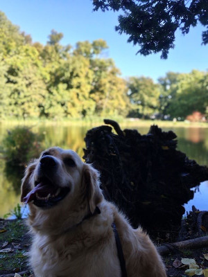 Na dzień dzisiejszy nie mamy z nią problemów. Ładnie zostaje w domu, zachowuje czystość, jest chętna do zabawy, ma dużo energii. W lipcu byliśmy wszyscy w Mrągowie na wakacjach. Kąpała się w jeziorze, hasała razem z kolegą labradorem po ogrodzonej działce.