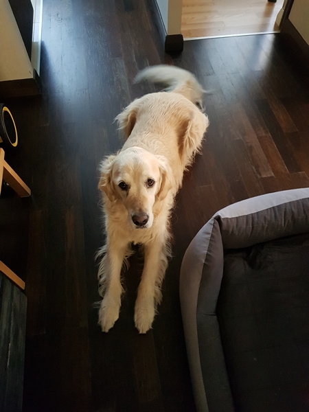 Fifi czuje się dobrze. Od przeszło 2 lat ma stwierdzoną niedoczynność tarczycy, o czym Fundacja jest poinformowana. Przyjmuje nadal 2x po 150 mg Eutyroxu. Raz w roku wykonuję jej panel badań z krwi, łącznie z tarczycą. Wyniki są dobre. Lek jest dobrany we właściwej dawce, bo nie widać oznak degradacji tarczycy. Pies nie przejawia żadnych niepożądanych zachowań. Nadal boi się wystrzałów i burz, ale mniej już nie ma totalnej paniki i strachu. Pracowaliśmy z Fifi jak mogliśmy najlepiej nad przywoływaniem od początku, kiedy jest u nas. Po tych wszystkich latach mogę stwierdzić, że okrzepła już trochę w polu. Tropienie, pogoń to jej największe zainteresowania. Czasami jeszcze zdarza się, że odbiegnie daleko, ale zawsze przychodzi. Jest bardzo mądra, zna i przestrzega wielu komend, lubi się uczyć, dlatego często zaglądamy do naszej zaprzyjaźnionej psiej szkoły. Kiedy musimy ją zostawić idzie tam na hotel, ma silną więź z panią. życie z Fifi jest bardzo przyjemne. Staramy się utrzymywać wagę 30 kg, w porywach 31kg. Mam prawdziwie goldeni apatyt, micha zawsze musi być na błysk. Żywiona jest Acaną bezkurczakową. Plus dozwolone warzywa owoce kefir, twaròg, surowe mięso, sporadycznie kość biodrowa cielęca. Na początku roku przeleczyliśmy uszy. Szczepień pilnuję. Pazury ściera oprócz bocznych, odrobaczanie co 3-4 msc. Futro trymowane trym.haczykowym i czesane na bieżąco, ma bardzo ładną sierść wg mnie i przy regularnej pielęgnacji naprawdę jej nie gubi w nadmiarze, mimo że ma niedoczynność tarczycy. Kleszcze przez kilka lat była na Foresto, ale bez szału. W tym roku próbuję kropli. Staramy się jak najwięcej dawać jej węszenia i ruchu oraz wykonywania poleceń w domu. Ma również swoje prace w domu: obowiązkowe wylizanie kubka po serku nat.i odniesienie go do kosza, przynoszenie zmiotki i szufelki, wynoszenie worka z plastikami pod śmietnik, lubi w zimie ściągać rękawiczki, kiedy wracam po pracy, zawsze po przyjściu czeka cierpliwie aż wyczyści się jej łapy i wiele wiele innych, które uwielbia i się dopomina.