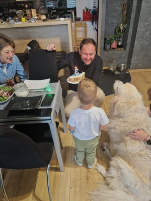 Generalnie z Maksiem wszystko było super, żadnych problemów, dużo spacerów po lesie i nowy poziom integracji z naszym najmłodszym członkiem rodziny - 3letnim synkiem Jasiem - wcześniej Maks podchodził do niego z dystansem, ale w tym roku zaczęli się nawet razem bawić, a spacery z tą dwójką w ty samym czasie są teraz w końcu możliwe, co nas bardzo cieszy i daje wszystkim dużo radości. W dodatku budują nam pod domem park, więc mamy teraz nowe ścieżki na spacery.