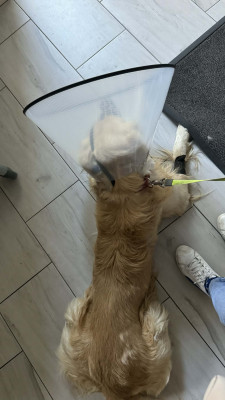 Ciastek przeszedł dziś zabieg kastracji oraz miał zrobione RTG stawów biodrowych. Prześwietlenie nie pokazało żadnych zmian chorobowych - Ciastek jest wolny od dysplazji
