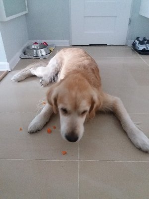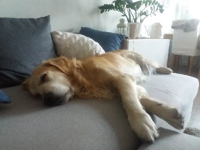Z przykrych rzeczy, to ostatnio Muffin w trakcie zabawy z piłką i innymi psiakami złamał pazura (okropny widok), na szczęście złamał go całego, więc wet tylko go odciął. Obyło się bez rozlewu krwi