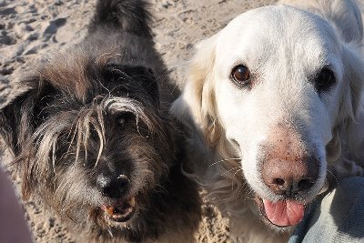 Przy okazji doktorowie zbadali za zupełną darmochę inne psiaki. Był młody golden z Kołobrzegu, przyjechały goldenki (te u których na wycieczce byłem w ostatnią niedzielę) i był stateczny golden w moim wieku i inne psiaki były... i kot jeden... i nawet Maniek się załapał bo ostatnio coś kiepsko słyszy - albo udaje wieśniak jeden. No w każdym razie doktorowie przebadali ponad dwadzieścia piesów, a niektóre z nich to jak się okazało były trochę chore na serducho i na inne okropne choroby. Doktory przepisały im tabletusie i teraz do zdrowia będą wracać - a ja kurde do Krakowa... No tak koniec wylegiwania się na plaży, niestety pora wracać.