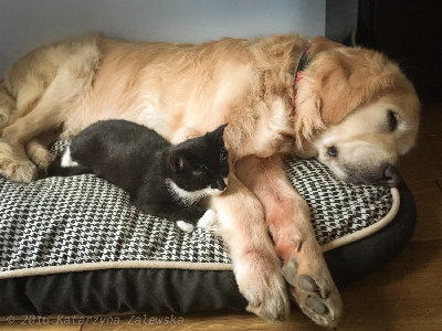 Tak, teraz praktycznie nie ma już wątpliwości, że Bemolek to taki staruszek. Co też tłumaczy jego stan zdrowia. Mam doświadczenie ze starym goldenkiem, bo półtora roku temu zostawił nas ponad 14 letni Kant. Ukochane psisko, które było z nami od szczeniaka. I przyznaję, że te 8 lat było dla mnie nie przekonywujące też przy porónaniu obu psów. Bemol przypomina po chodzie i zachowaniu właśnie Kanta w ostatnich latach życia, nie ośmiolatka. Na ile kocie głupole pozwolą Bemolek będzie miał spokojną starość ale swoją drogą nie wyobrażam sobie, co by było, gdyby wziął go ktoś, sugerując się podanym wiekiem, kto ma w domu schody...