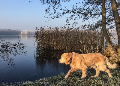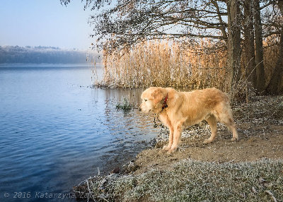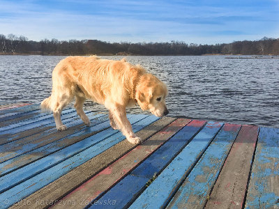 Poza tym odwiedzamy okoliczne jeziora i lasy, a ponieważ mamy do czynienia z psem luksusowym to nie zasuwamy tam na własnych czterech łapach ale każemy się wozić. Chyba już wspominałam, że Bemolisko wszystkimi siłami broniło się przed wejściem do samochodowej klatki? Jego choice number one to fotel kierowcy , ostatecznie tylne siedzenie, ale po pertraktacjach bestia poszła na kompromis i zgodziła się na bagażnik kombi. Ufff. A tak na marginesie wielki to on nie jest, ale ja też nie, a wkładanie i wyjmowanie go z bagażnika nie jest tym, co mój kręgosłup lubi najbardziej, więc na gwiazdkę zamówiłam sobie (sobie???) platformę teleskopową, żeby mój staruszek mógł elegancko i osobiście się do autka wgramolić i samodzielnie wyleźć bez tych spojrzeń typu "no chyba nie myślisz dziecko drogie, że będę sam wyskakiwać z tego bagażnika jak jakiś nie przymierzając smarkacz?".
