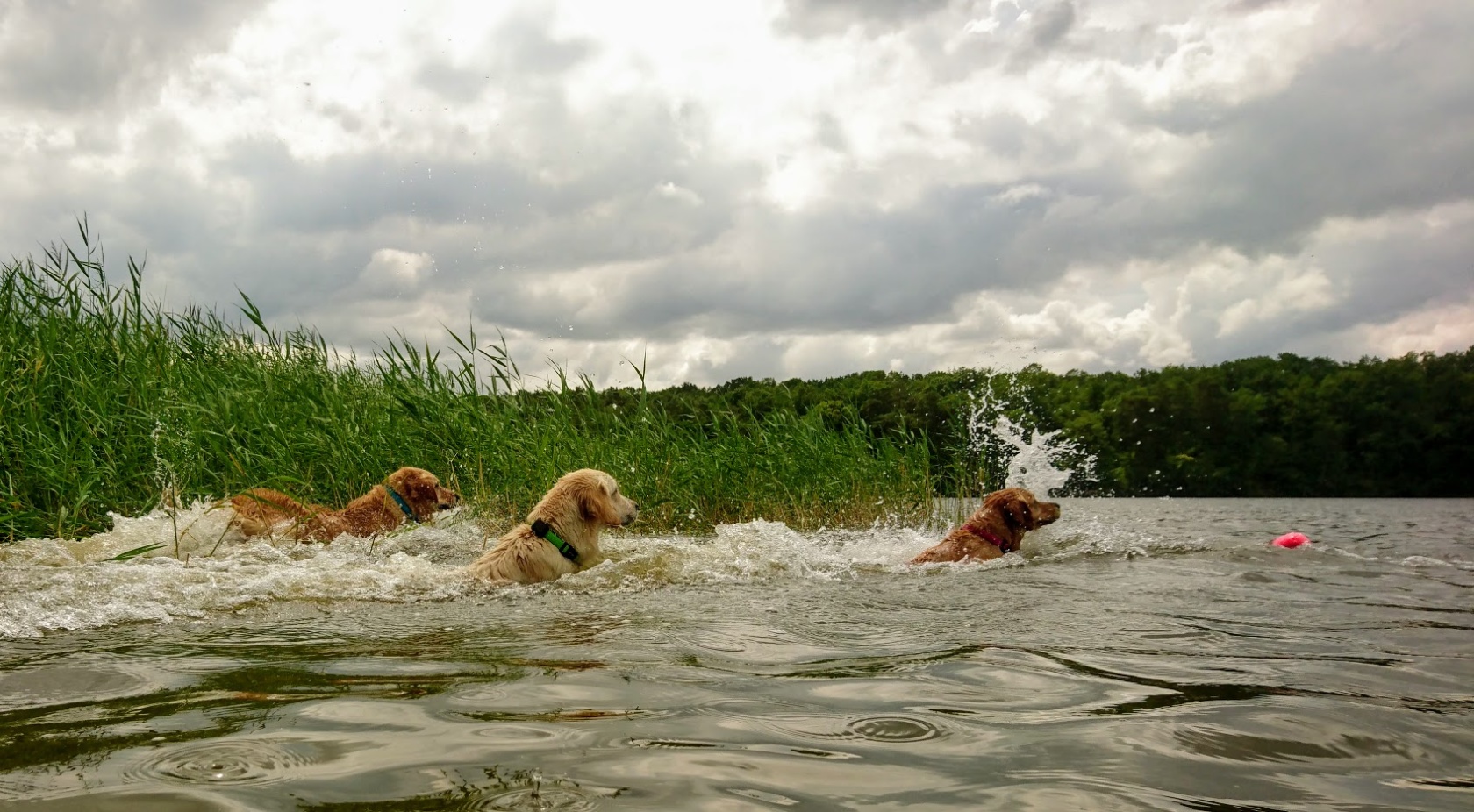 W ostatni weekend zabraliśmy psiaki nad jezioro i Bella jak wariatka po odpięciu smyczki wparowała do wody...