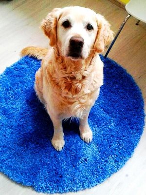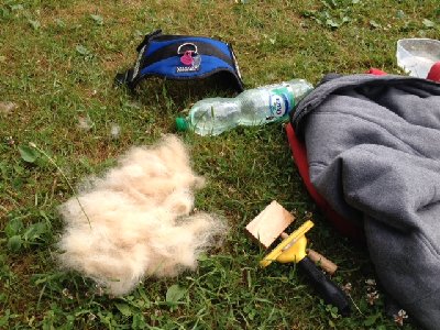 Sobota pod znakiem spaceru, rzucania piłki (ćwiczymy przynoszenie w zamian za smaczki) i wyczesywania futrzaka (patrz foto niżej) ;-)