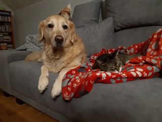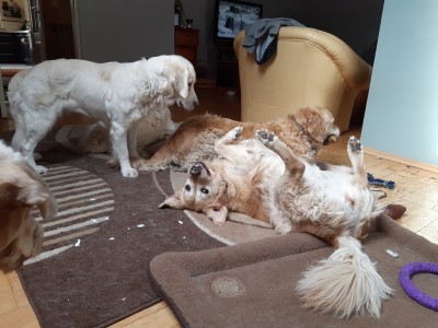 Aga Nova Scotia też jest Twój? Myślałam, że tylko towarzyszy na spacerach bo to jakiś znajomy a tu widzę, że w domu też z Wami, to niezłe stadko retrieverów masz teraz