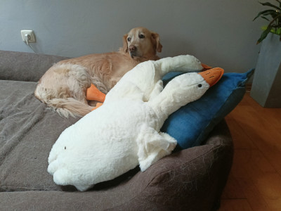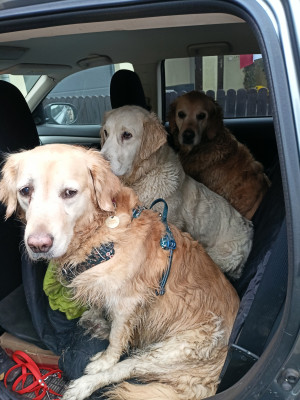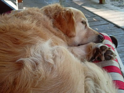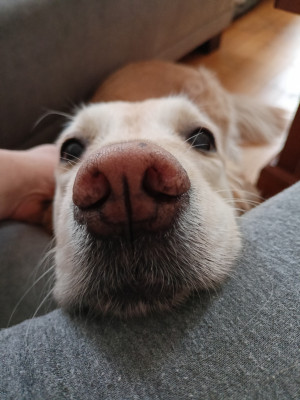 "Łobuz ma się całkiem dobrze. Przyjmuje leki na tarczyce i suplementy typu kolagen. Planuję tez podać jej Librelle. Stawy ostatnio jej dokuczają po większym wysiłku, po ostatnim przekopywaniu łąki mocno kulała na przednią łapkę. Ma też zdiagnozowaną spondylozę w dość zaawansowanym stopniu. Do autka nie wskakuje już jak zając i trzeba jej dupkę podnosić. Ale kondycja jest dobra