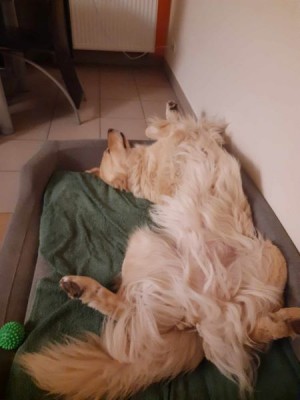 Mimo niepohamowanego apetytu waga utrzymuję się na prawidłowym poziomie 40 kg. Lucky nie sprawia żadnych problemów jest posłusznym i bardzo mądrym pieskiem. Coraz lepiej radzi sobie w grupie, jest psem który nie wchodzi w konflikty raczej trzyma się z boku chodź ma jednego kolegę z którym potrafi się bawić w ganianego.
