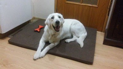Kaja łaknie kontaktu z człowiekiem, jest bardzo przyjaznym psiakiem, który jest wpatrzony w swojego opiekuna. Wczoraj nie mogła znaleźć sobie miejsca, ale później przydreptała koło mnie i spała grzecznie do 7 rano.