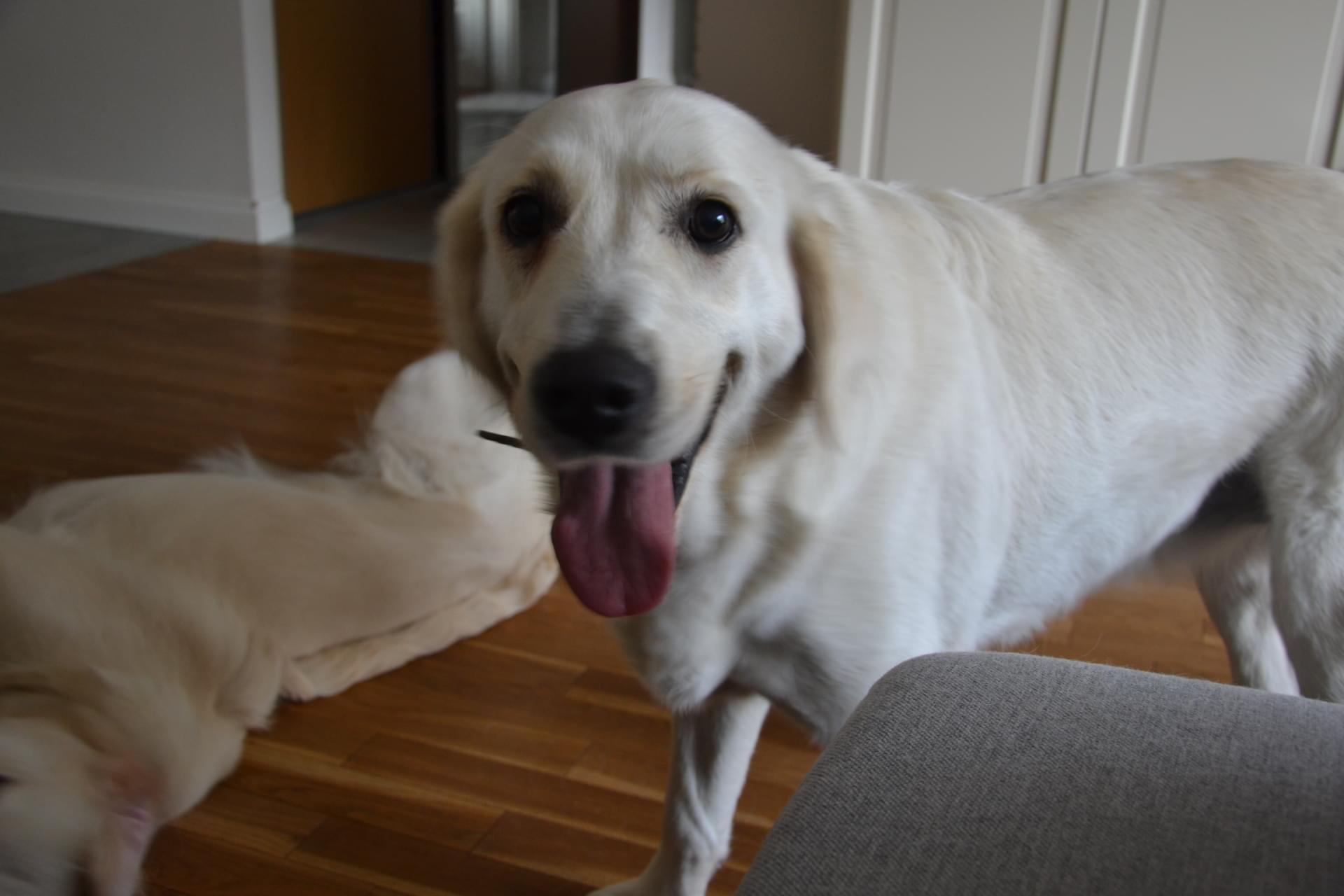 Nasz sunie (Gaja i Lora) nie są zbyt zadowolone z nowego domownika,trochę na Kaję powarkują. Kaja próbuje zachęcić Gaję do zabawy ale chyba jeszcze za wcześnie.