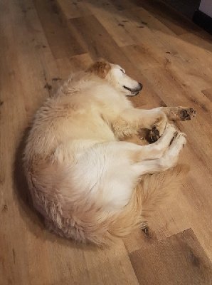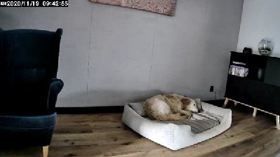 Witajcie, dziś ważny dzień, Frodek po raz pierwszy został sam w domu. Póki co całkowicie sam, bo stosunki z Bilą wymagają jeszcze trochę czasu. Idąc za zasadą "ufaj, ale kontroluj" zamontowaliśmy kamerkę żeby w razie czego uratować chociaż część kanapy przed zjedzeniem :lol: Frodek ani razu nie zapisnął i w zasadzie przez cały dzień robił to co na zdjęciu. Bałam się też, że zastaniemy jakąś kupę, bo przecież Frodo nie był nauczony pilnowania swoich potrzeb, a tu podłoga sucha, czysta i pachnąca.