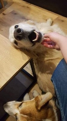 Wczoraj zabrałam ze schroniska w Krotoszynie 9 letniego Frodo. Psiak jest zaniedbany, bardzo chudy, ale jak na swój wiek to ma więcej energii niż nasz roczny corgi. Jak przyjechałam po niego to Pani ze schroniska powiedziała, że Frodo właśnie jest na spacerze i warknął na Panią, która chciała nachalnie się z nim przywitać więc już wiedziałam, że trzeba ostrożnie podchodzić do wszelkiego kontaktu. Frodo jednak nie był ostrożny i od samego początku garnął się do miziania i zaczepiania. Bardzo ładnie wszedł do samochodu i poza jedną próbą przejęcia kierownicy bardzo ładnie siedział na tylnej kanapie. W drodze do domu od moich rodziców przez 2 godziny leżał obok mojej mamy raz na jakiś czas kładąc jej głowę na kolanach. Nasza Bila jest sporą egoistką i póki co skupia się na warczeniu na Frodo przy każdym bliższym kontakcie a on ładnie ustępuje i sobie odchodzi więc cieszy mnie, że póki co jest uległy. Na razie wszystko jest dla niego nowe więc zwiedza każdy zakątek domu, próbuje podkradać jedzenie a jest tak wysoki, że bardzo trzeba z tym uważać :) Na spacerze idzie poprawnie, jak na psa, który 7 lat spędził w kojcu można nawet powiedzieć, że chodzi dobrze, trochę ciągnie, ale nie jest to wyrywanie rąk przez całą trasę. Chłopak jest świeżo po kastracji i nie zrobili mu jeszcze wścieklizny więc jutro od razu podjedziemy do weta żeby to ogarnąć. Wrzucam kilka fotek a więcej informacji jak już trochę lepiej się poznamy z Frodo :)