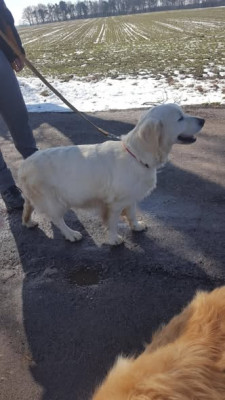 U Lei wszystko ok. Przeszła zabieg sterylizacji, coraz bardziej zżywa się z Izą oraz jej rodziną... i ze wzajemnoscia ;-) Prawdopodobnie jest także starsza niż 3 lata - ma ok. 4-5. Leia jest wzorcowym, pelnym radosci z zycia i spragnionym bliskosci czlowieka, goldenem.