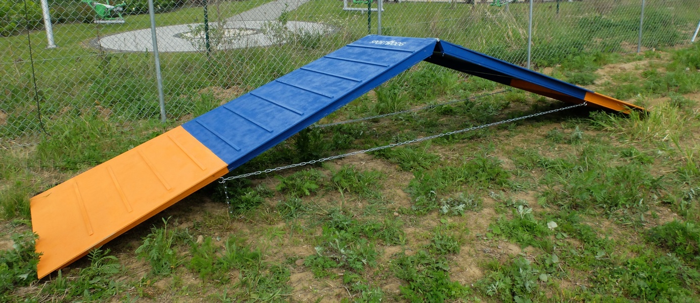 Ja trenuje Agility z moją suczką i generalnie ta przeszkoda nazywa się palisada. Na treningach jest to element, który można regulować i zaczyna się od zdecydowanie mniejszego kąta, tak aby właśnie psiakowi nie wydawała się zbyt ciężka do przejścia i odstraszająca. Coś w tym stylu: