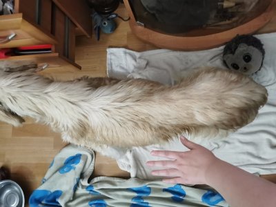 ... Kuchnia. Oczywiście skacze na domowników przy powrocie. Zachowuje się jak widomy pies, trzeba tylko troszkę mu pomagać. Jak mu się chce nawet poda łapę. Jest z niego niezły leniuszek-do niedawna próbował wykorzystywać tate, żeby wnosił go po schodach - wchodził tylko ze mną, z nim panicz czekał, aż się go dźwignie. Lubi być zaopiekowanym. Zdarza mu się nawet szczeknąć. Od czasu do czasu idzie pod balkon odpocząć i nie chce, żeby ktokolwiek mu przeszkadzał. Potrafi wejść na łóżko i na kolana po kebaba. Wizyty u weterynarza znosi bardzo dobrze.