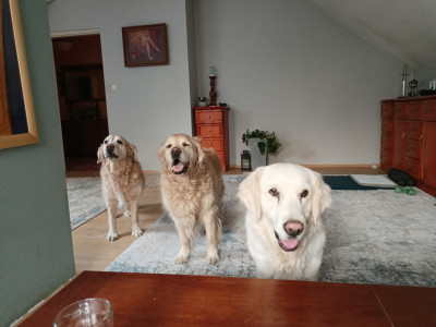 W załączniku przesyłam zdjęcia psów Nabi, Szelmy i Luny. Od wakacji w domu przebywają także dwa młode koty, z którymi Nabi szczególnie chętnie wchodzi w kontakt, wtulając się i ocierając o nie.