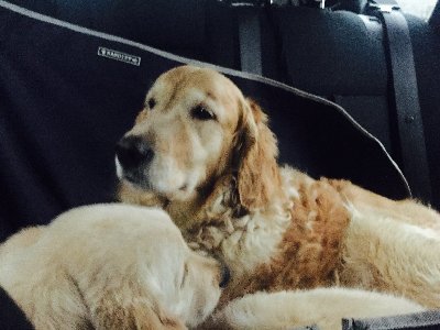 Dzisiaj przyjechała do Wrocławia "ciocia Ida", goldenka mojej mamy na "przegląd weterynaryjny", więc ma koleżankę w domu, jest nią bardzo zainteresowany, ale niestety Idusia ma go w nosie, więc jej nie zaczepia; zobaczymy jak się będzie z nim bawiła moja Zorka, która szczeniaki uwielbia , a od poniedziałku będę miała demolkę w chacie <3