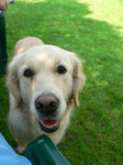 Lubi gonić za pileczką ale nie bardzo jeszcze wie, że trzeba ją przynieść. Nie boi się spadających patyków czy innych niespodziewanych rzeczy. Sprawdza tylko czy da się tego zjeść:P