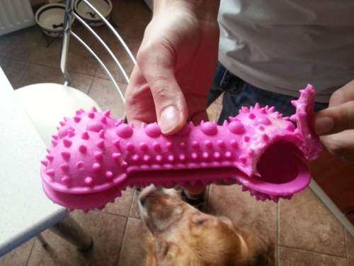 Powiem Ci, że nasz Tutis ma czasami niezłe rozkminy A jak główkuje to ja mam mnóstwo śmiechu Wiola i Lola - 2013-08-29, 20:26 I ja podchwycę ten pomysł z butelką. Ja jeszcze mam patent na zabawki gumowe, które kupuję na odzieży używanej za 1 zł. Są to takie zabawki dla niemowlaka z piszczałkami. Odcinam podstawę zabawki i wkładam w środek smaczki z odrobiną pasztetu. Dobrze sprawdzają się zające Iza Tutisowa - 2013-08-29, 21:21 Wiola to ja podchwytuję Twój pomysł I myślę, że Tutis będzie miał co robić Magda i Nika - 2013-08-29, 22:09 Skądś ten widok znam... Czasami mam wrażenie, że producenci zabawek dla psów sami nigdy psa nie widzieli i nie wiedzą jak zdolne potrafią być niektóre