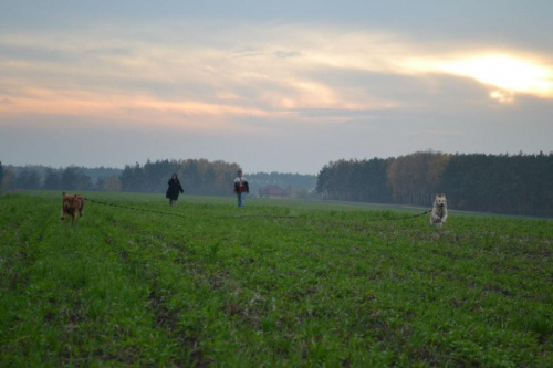 Mała jest wpatrzona w nich jak w obrazek na spacerku odwracała głowę co chwilę by sprawdzić czy stan liczebny się zgadza. Jest uroczą, drobniutką sunią <3 Już zazdroszczę przyszłej rodzinie do której trafi szkoda, że było pochmurnie