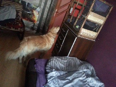 Śpi w domu pod schodami, na swoim kocu. Zimę spędzi w domu, zapewne u chłopaków na górze. Bardzo lubi z nimi przebywać.